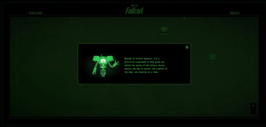 Увы, таймер вовсе не предназначался для показа чего-то новенького по Fallout. Он скрывал «программу» Fallout Explorer — путеводитель по закулисью съёмок сериала «Фоллаут». Фанаты могут перемещаться по «карте» и исследовать места, показанные в шоу. Например, Убежище 33 или пентхаус Мистера Хауса.