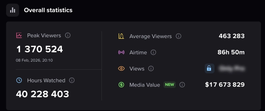 • Всего фанаты потратили на трансляции 40,2 миллиона часов.