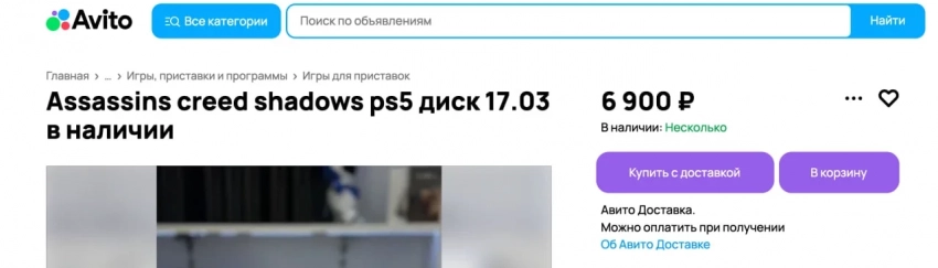 Главные новости » Эксклюзив » Диски Assassinʼs Creed Shadows для PS5 появились на «Авито» за три дня до релиза игры