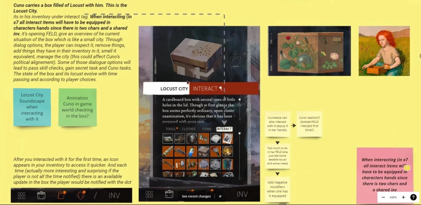 Отдельной механикой стала «Коробка с Саранчой», которую носил с собой Куно. Этот объект позволял ему погружаться в воображаемый мир, где он мог размышлять, получать новые идеи и взаимодействовать со своими мыслями. Политическая составляющая игры раскрывалась через развивающуюся цивилизацию насекомых, влияющую на мировоззрение героя. Внутрь коробки можно было помещать различные предметы, которые трансформировались в здания, сооружения и другие элементы этого маленького мира.