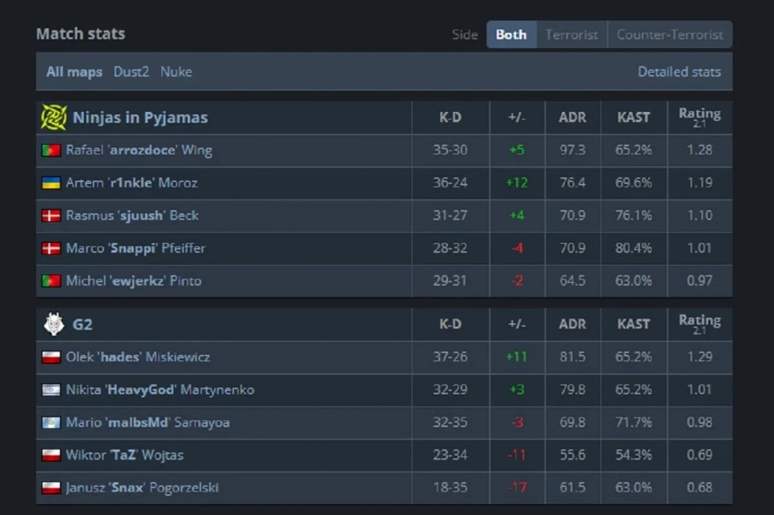 Статистика матча NiP против G2