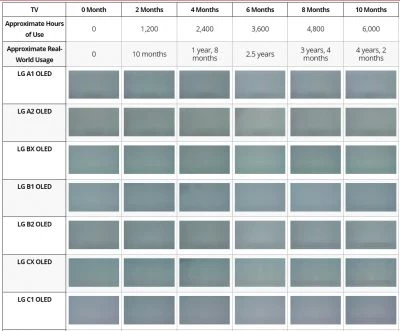 - Через десять месяцев стресс-теста, эквивалентного четырём годам и трём месяцам эксплуатации при нормальных условиях, признаки выгорания проявились у всех OLED-телевизоров, хотя и в разной степени.