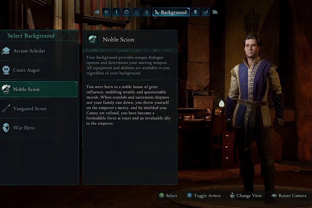 На одном из изображений показали информацию о «благородном отпрыске». Если выбрать эту предысторию, то геймер станет выходцем влиятельного дома, но впоследствии столкнется с падением своей семьи в результате споров о наследстве.
