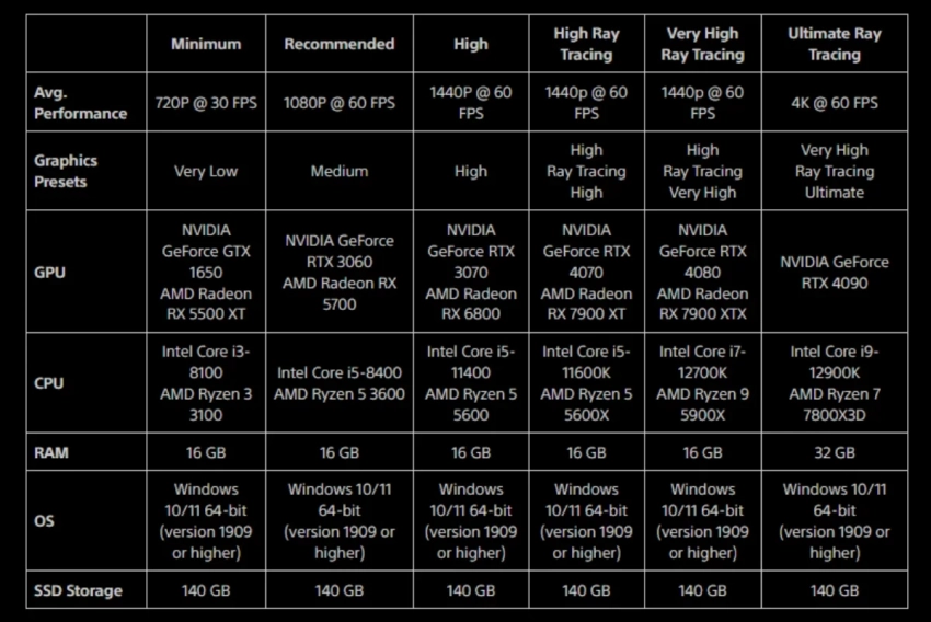 • Видеокарта — NVIDIA GeForce RTX 4080 или AMD Radeon RX 7900 XTX