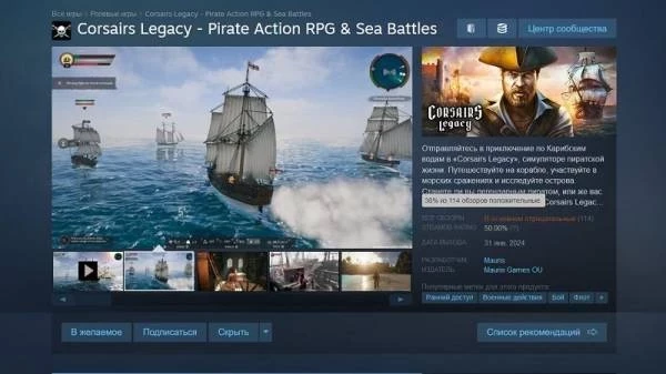 При этом спустя сутки версия «Наследия Корсаров» из раннего доступа Steam заметно подешевела. Корректировка цен произошла во многих регионах — в российском сегменте стоимость упала почти на 50 %, до 990 рублей.